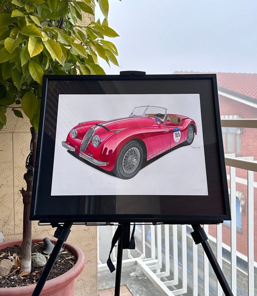 Una volta completato il disegno, esso è pronto per essere spedito o incorniciato. In caso di consegna a mano il disegno viene disposto su un cartoncino da 40x50cm solitamente di colore nero (ma è possibile a richiesta cambiarne il colore), e di seguito viene incorniciato. Il colore della cornice può essere scelta dal cliente: al classico nero si può optare per un colore che richiami l’automobile oppure è possibile richiedere un colore specifico a richiesta. Nella sezione GALLERIA, in fondo, potrai vedere le differenti combinazioni già ricreate.